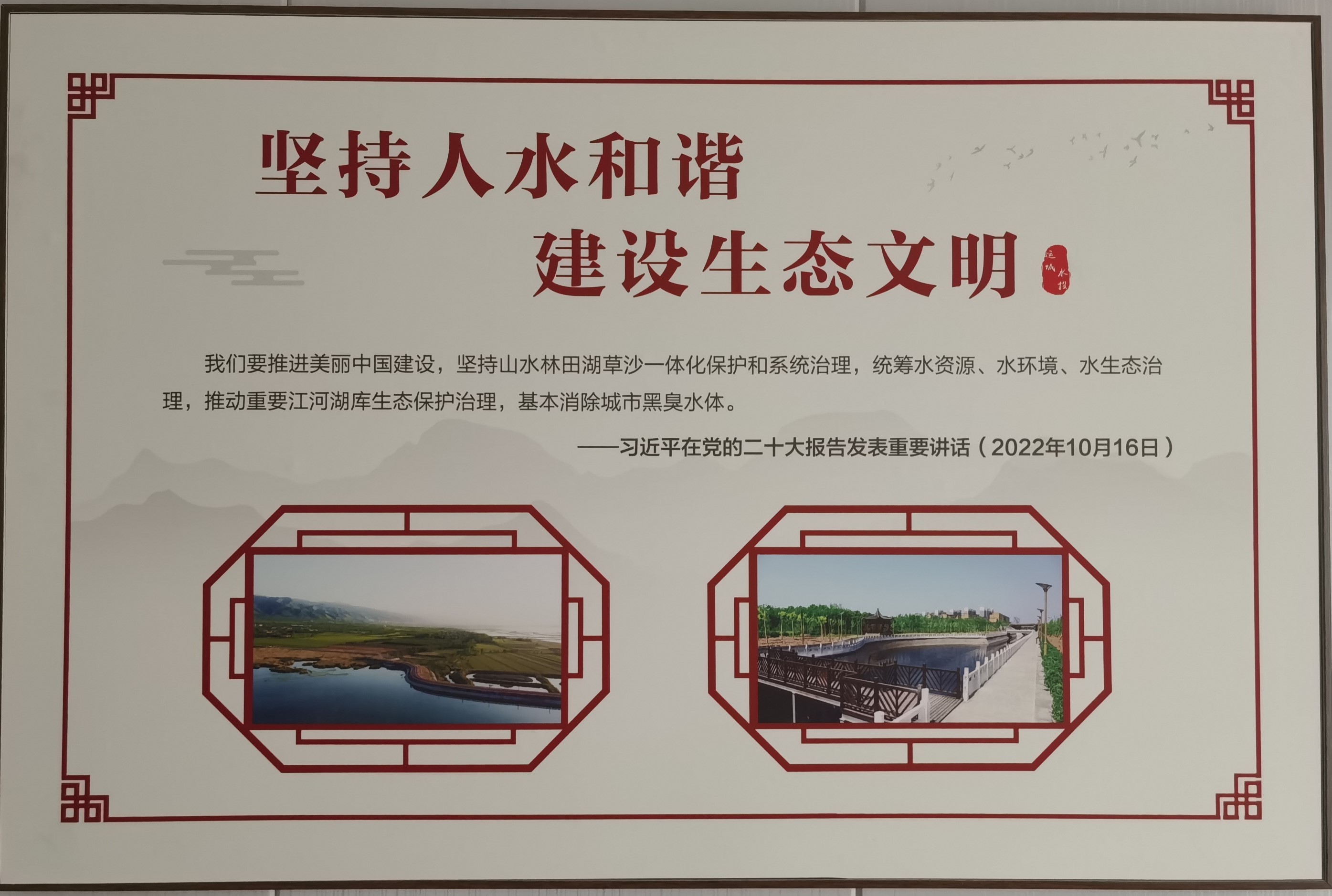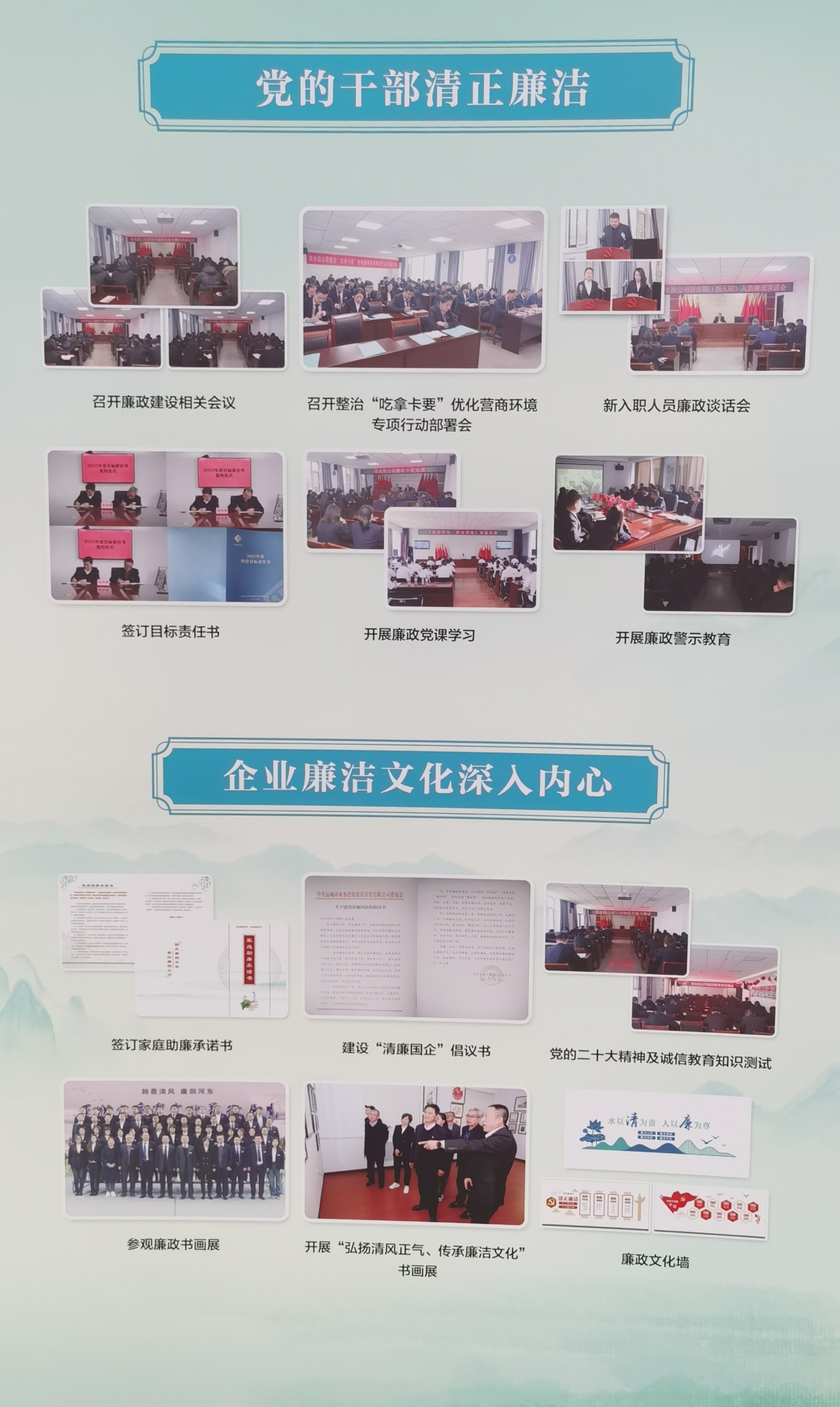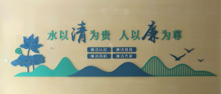 走進(jìn)公司辦公樓,映入眼前的一幅以“水以清為貴 人以廉為尊”為主題的廉政文化墻,讓人入眼入心,敬廉崇尚的山水風(fēng),簡(jiǎn)約凝練的文字,與構(gòu)建“清廉之風(fēng)”潤(rùn)“人水和諧”的良好生態(tài)發(fā)展相融合。同時(shí),通過廉政書畫室建設(shè)、清廉習(xí)語版面、廉政形象墻、水生態(tài)治理修復(fù)成效版面等多角度多層次厚植了廉政理念,夯實(shí)了廉政根基,營(yíng)造了學(xué)廉敬廉的濃厚氛圍。