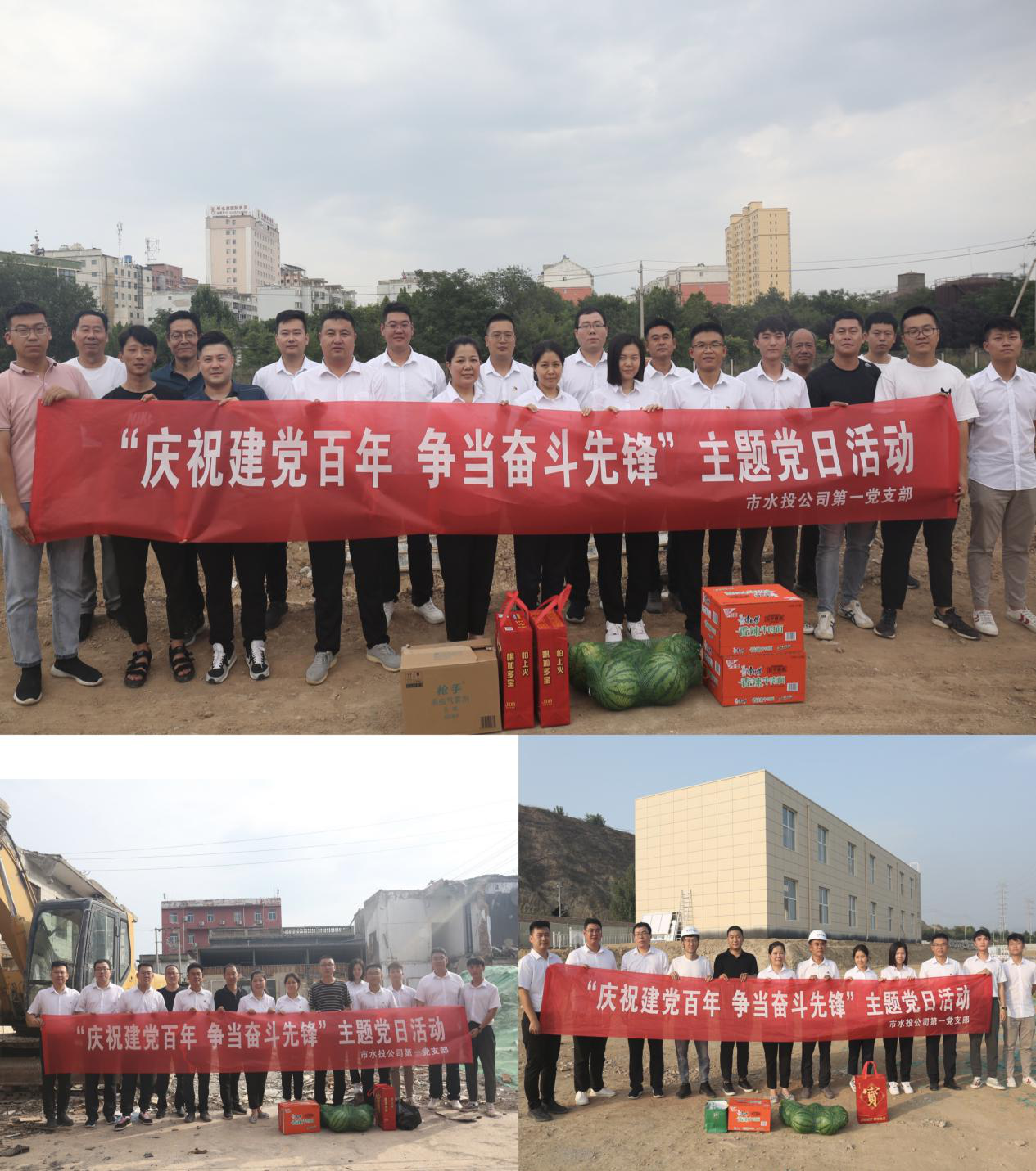 在建黨一百周年之際,為充分表達(dá)黨組織對(duì)一線黨員干部群眾頂酷暑、戰(zhàn)高溫,攻堅(jiān)克難抓建設(shè)的工作干勁的鼓勵(lì)和肯定,對(duì)一線黨員干部群眾的生產(chǎn)生活提供一定的幫助,為他們送去組織的關(guān)心和關(guān)愛,在學(xué)習(xí)活動(dòng)結(jié)束后,支部部分黨員、入黨積極分子共同來到干河綜合治理工程3標(biāo)段項(xiàng)目工地、姚暹渠禹都段項(xiàng)目工地和鴨子池項(xiàng)目工地,詳細(xì)了解各段施工進(jìn)度及存在的困難問題,現(xiàn)場(chǎng)溝通交流、積極出謀劃策,同時(shí)為各項(xiàng)目工地黨員干部群眾送上了西瓜、飲料、防蚊液、花露水等消暑品。