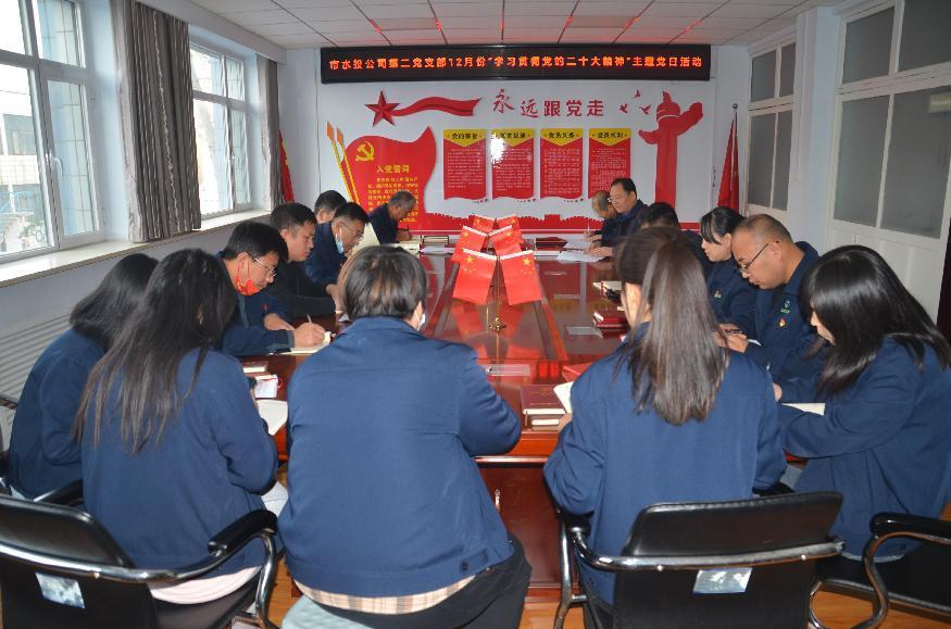 按照市水投公司黨委統(tǒng)一部署要求,第二黨支部于2022年12月5日下午組織全體黨員、積極分子開展了“學(xué)習(xí)貫徹黨的二十大精神”主題黨日活動(dòng)。