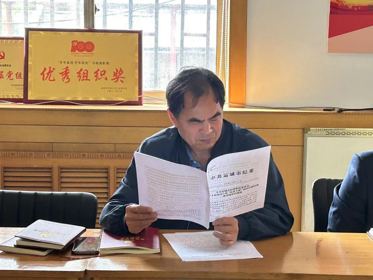 為繼續(xù)加強黨員領(lǐng)導(dǎo)干部黨風(fēng)廉政建設(shè),嚴(yán)明紀(jì)律規(guī)矩,支部紀(jì)檢委員狄紅革同志傳達了《 中共運城市紀(jì)律檢查委員會關(guān)于8起黨員干部“吃拿卡要”破壞營商環(huán)境典型案件的通報》。