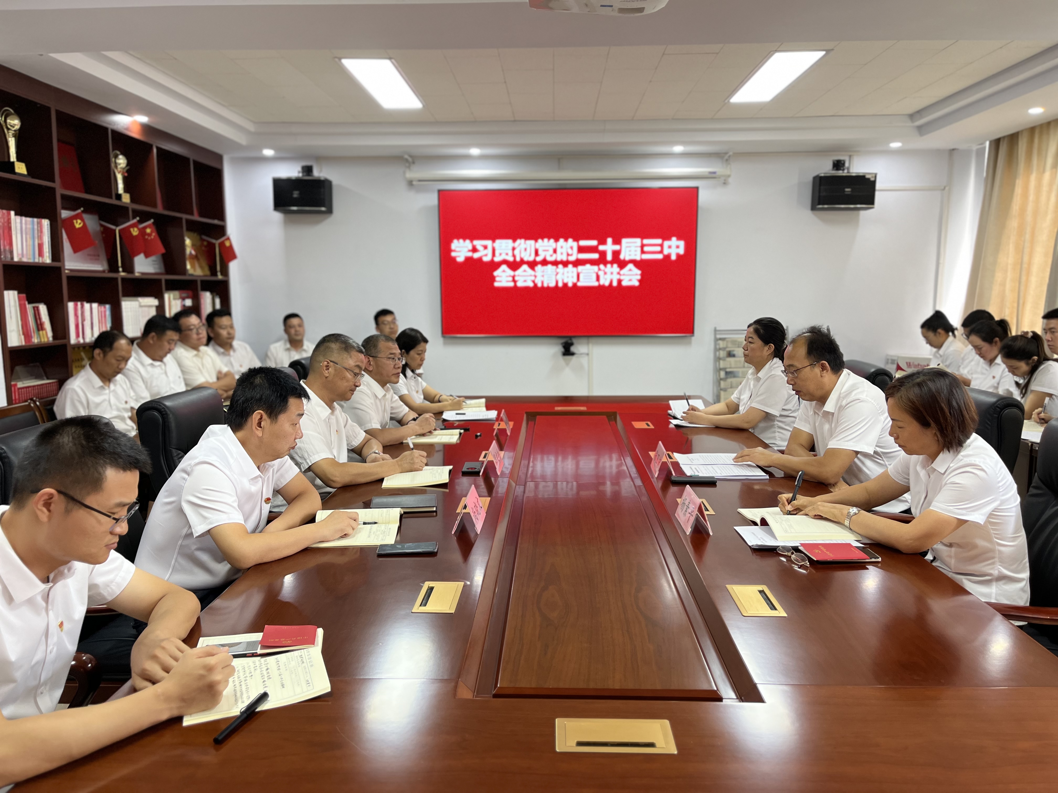 根據(jù)上級黨委工作安排,市工信局(市國資委)黨組成員(黨委委員)、市紀(jì)委監(jiān)委派駐市工信局紀(jì)檢監(jiān)察組組長張衛(wèi)宏到公司對機關(guān)全體黨員開展學(xué)習(xí)貫徹黨的二十屆三中全會精神宣講會。黨的二十屆三中全會對深化國資國企改革進一步作出重大部署,張組長以此為切入點對全會精神的核心要義和精神實質(zhì)進行了深入淺出的宣講,對公司下一步發(fā)展提出七點建議,要求領(lǐng)導(dǎo)班子成員及全體黨員要以學(xué)習(xí)貫徹習(xí)近平總書記關(guān)于國有企業(yè)改革發(fā)展和黨的建設(shè)的重要論述精神為統(tǒng)領(lǐng),把好方向、守正創(chuàng)新,將學(xué)習(xí)貫徹落實二十屆三中全會精神與公司實際緊密結(jié)合,切實做到學(xué)思用貫通、知信行統(tǒng)一。