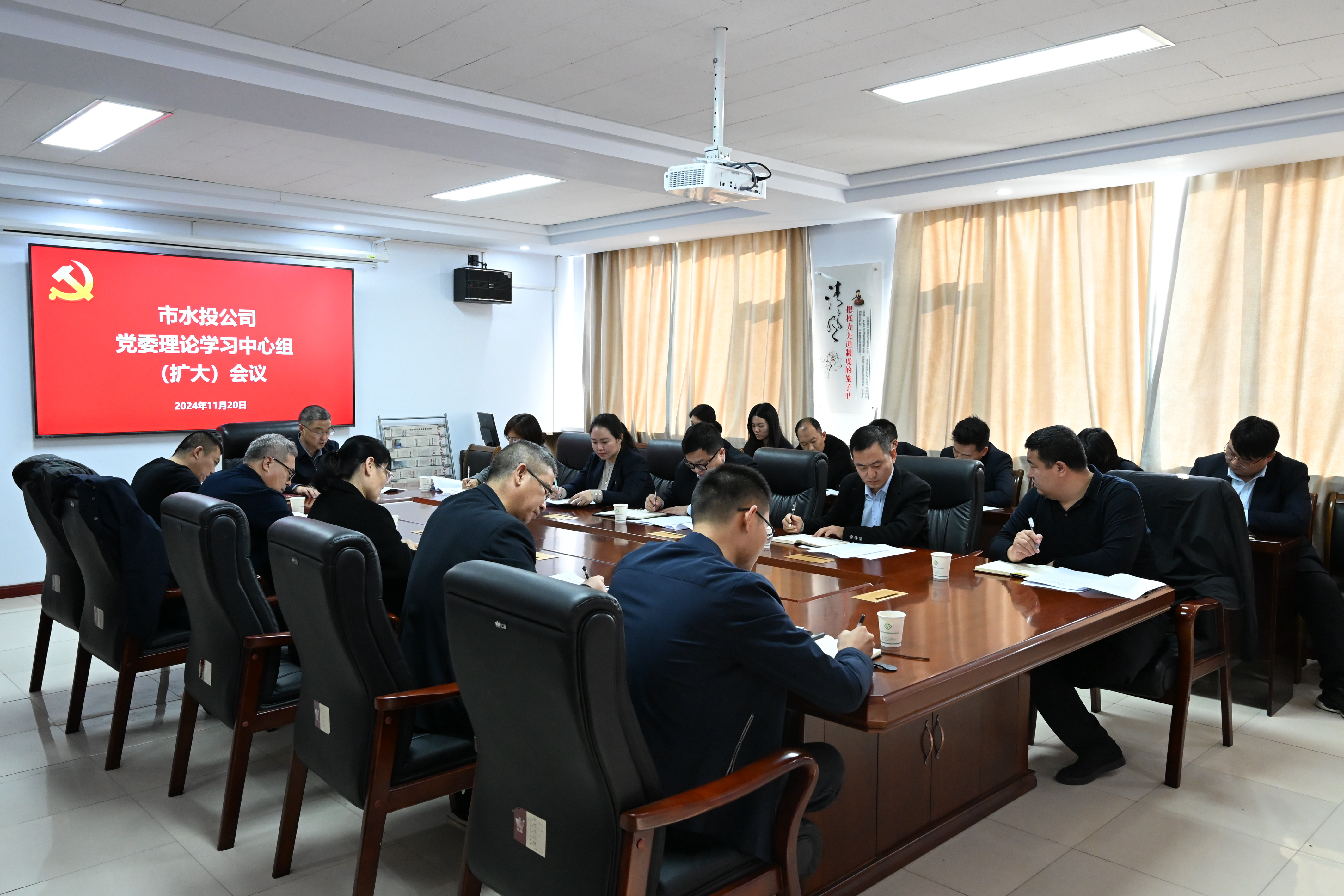 11月20日,市水投公司黨委理論學(xué)習(xí)中心組(擴(kuò)大)會(huì)議召開,傳達(dá)學(xué)習(xí)習(xí)近平總書記在省部級(jí)主要領(lǐng)導(dǎo)干部學(xué)習(xí)貫徹黨的二十屆三中全會(huì)精神專題研討班開班式上和在湖北考察時(shí)的重要講話精神,學(xué)習(xí)習(xí)近平總書記關(guān)于安全生產(chǎn)的重要論述,傳達(dá)市委市政府有關(guān)會(huì)議精神和省、市紀(jì)委監(jiān)委有關(guān)文件。黨委書記、董事長(zhǎng)薛文兵主持會(huì)議并講話。黨委副書記、總經(jīng)理?xiàng)钏仄剑鼽h支部書記、機(jī)關(guān)中層以上干部參加學(xué)習(xí)。