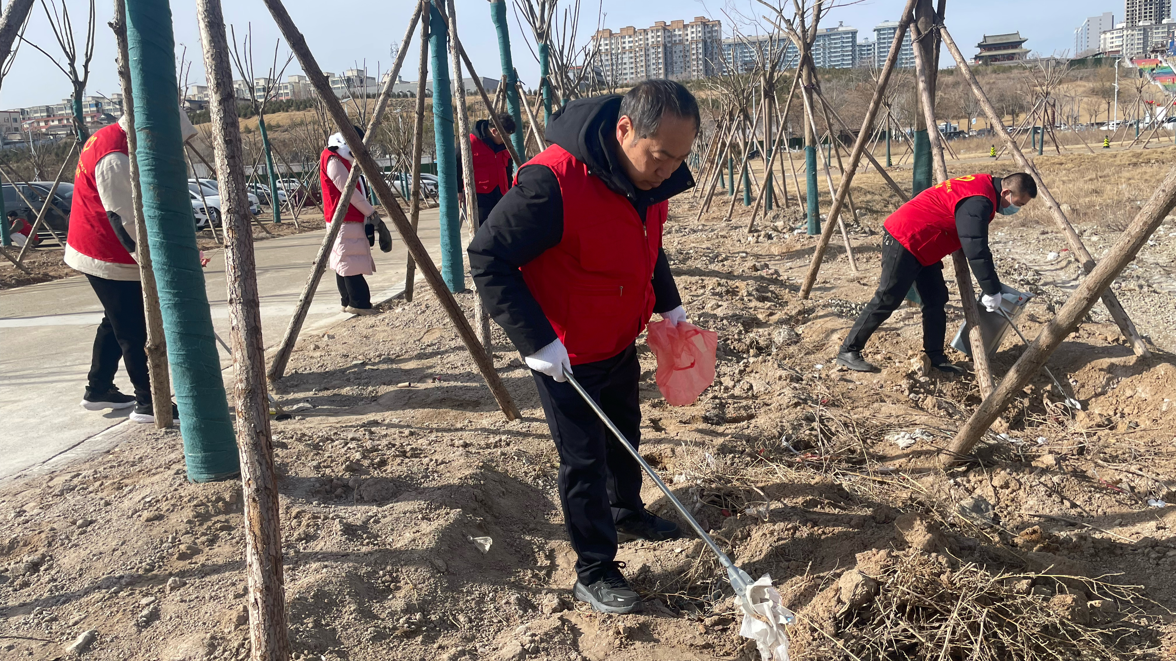 活動(dòng)中,黨員同志們身穿紅馬甲,分工明確、密切配合,按照事先劃分區(qū)域開展行動(dòng)。大家手持垃圾鉗、垃圾袋等工具,圍繞鹽湖22號(hào)堤埝、濕地公園、11-1號(hào)路等范圍,深入堤埝兩側(cè)、蘆葦叢等對(duì)煙頭、塑料瓶、泡沫、果皮紙屑等垃圾進(jìn)行撿拾清理,共清理清運(yùn)垃圾60余袋,在大家齊心協(xié)力下鹽湖周邊衛(wèi)生環(huán)境得到明顯改善。