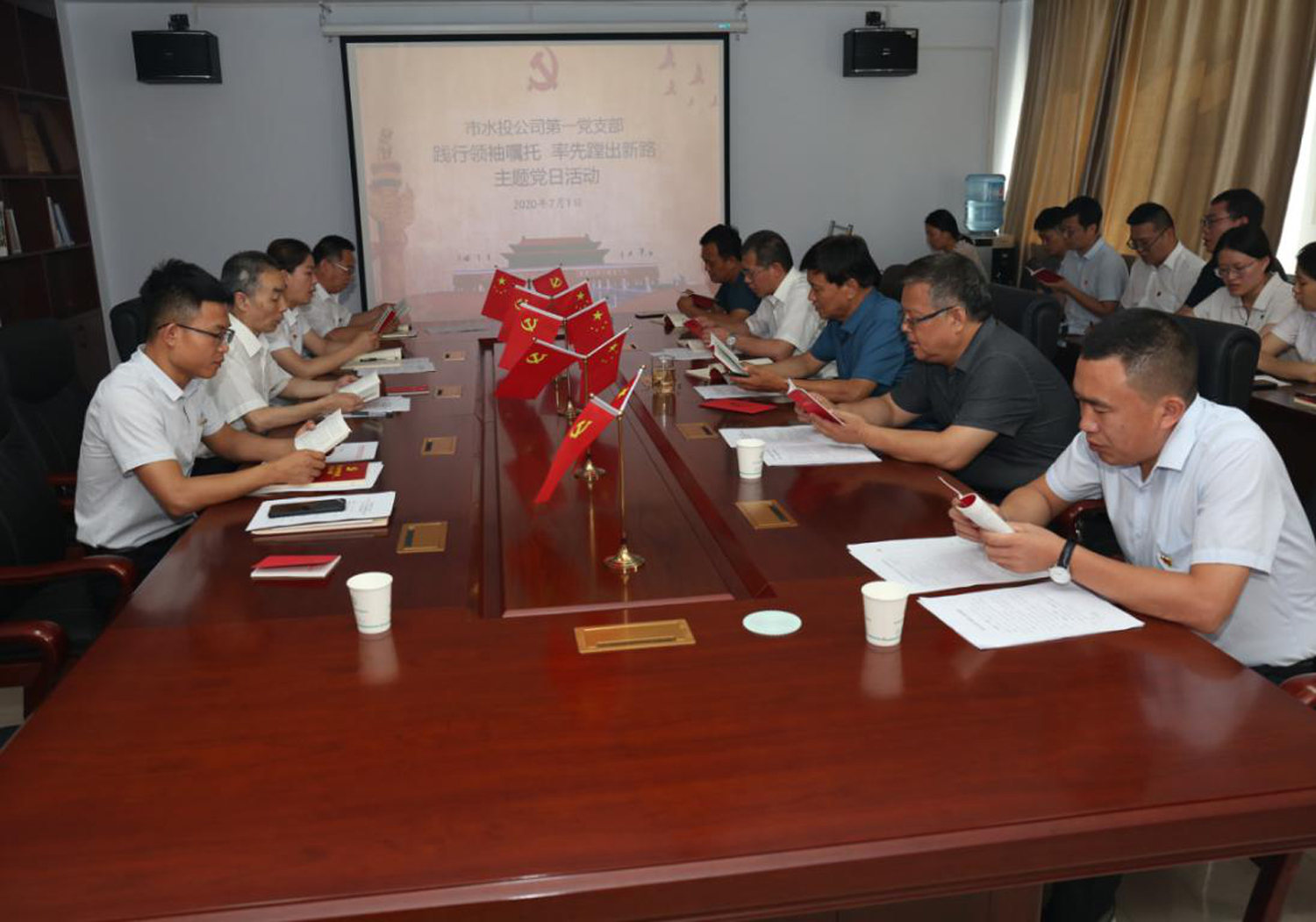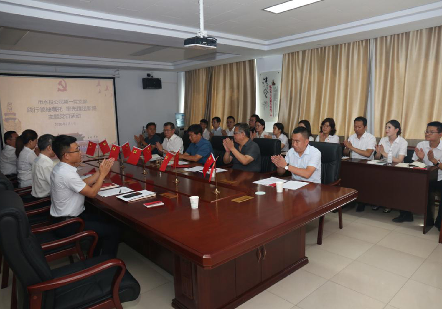 7月1日下午,支部組織黨員、入黨積極分子和群眾代表,在公司四樓黨建活動室,開展了“踐行領袖囑托,率先蹚出新路”主題黨日活動。市國資委國企黨建與企業(yè)領導管理科科長呂增軒一行到會指導。
