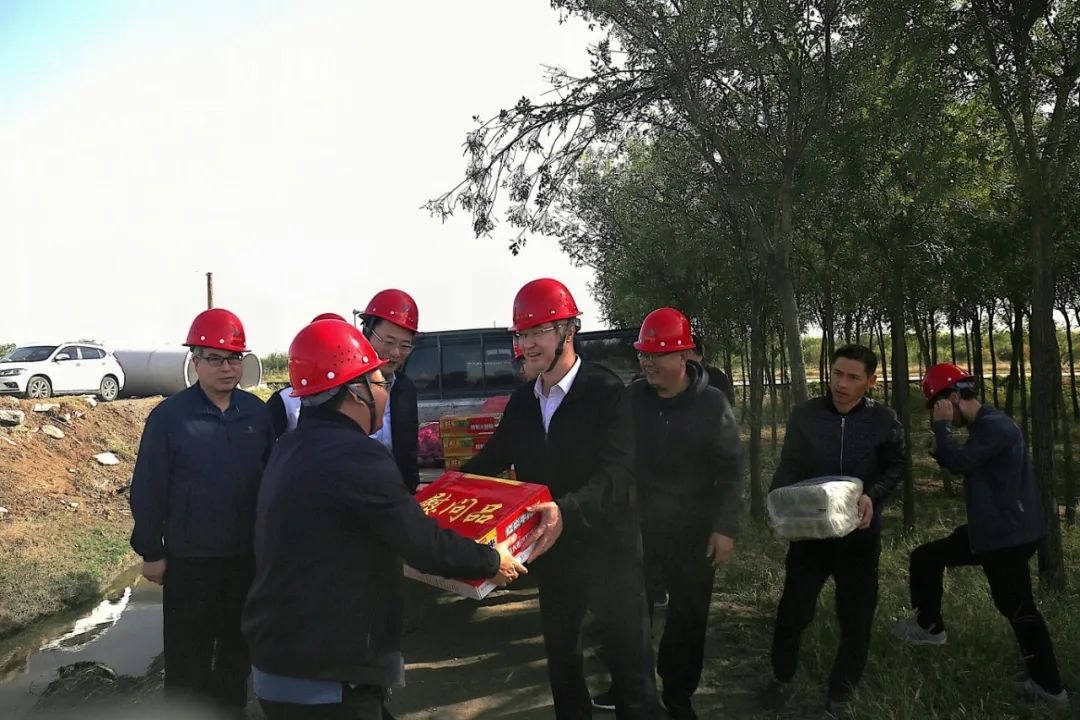 佳節(jié)情意濃,慰問暖人心。在慶祝新中國成立75周年之際,10月1日上午,公司黨委書記、董事長薛文兵到常硝渠項目工地開展安全帶班檢查并慰問一線員工,隨后前往姚暹渠鹽湖段現(xiàn)場了解項目設(shè)計情況。市水工局有限公司、市水利勘測設(shè)計院相關(guān)人員參加。