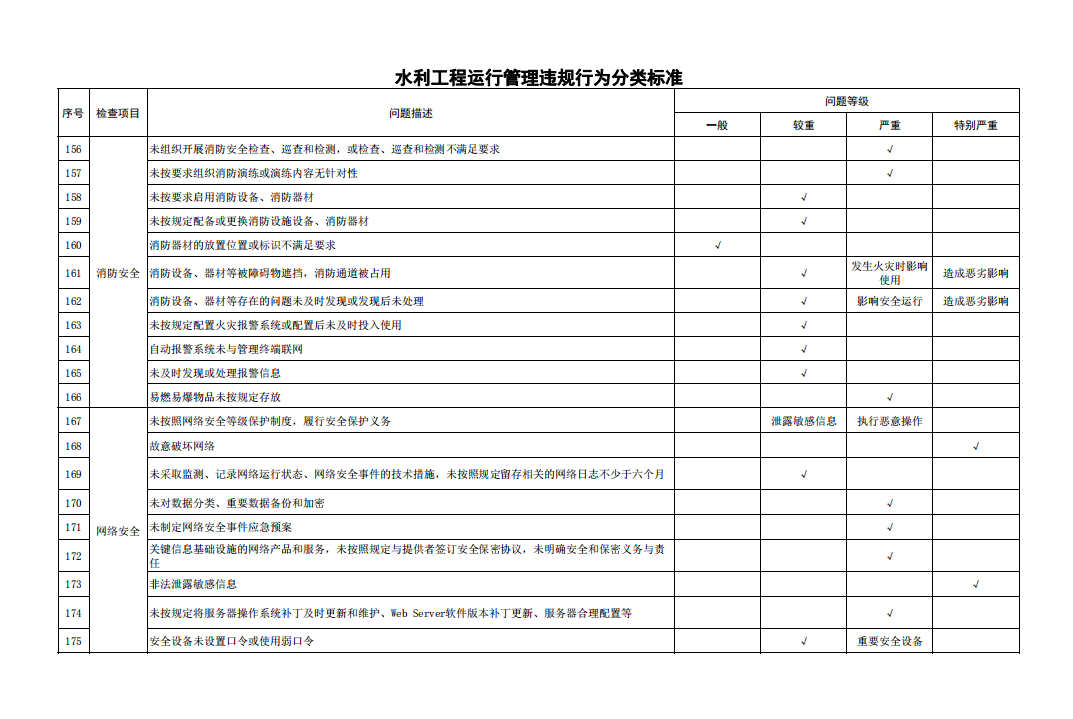 第十一條 對檢查發(fā)現(xiàn)的運(yùn)行管理問題按照運(yùn)行管理違規(guī)行為分類標(biāo)準(zhǔn)和工程缺陷分類標(biāo)準(zhǔn)進(jìn)行認(rèn)定。