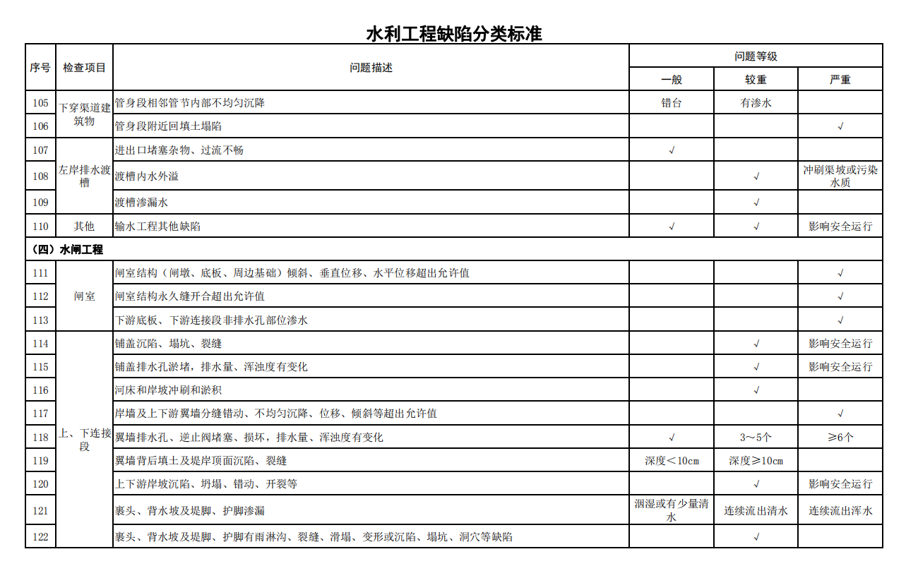 2.水利工程缺陷分類標(biāo)準(zhǔn)