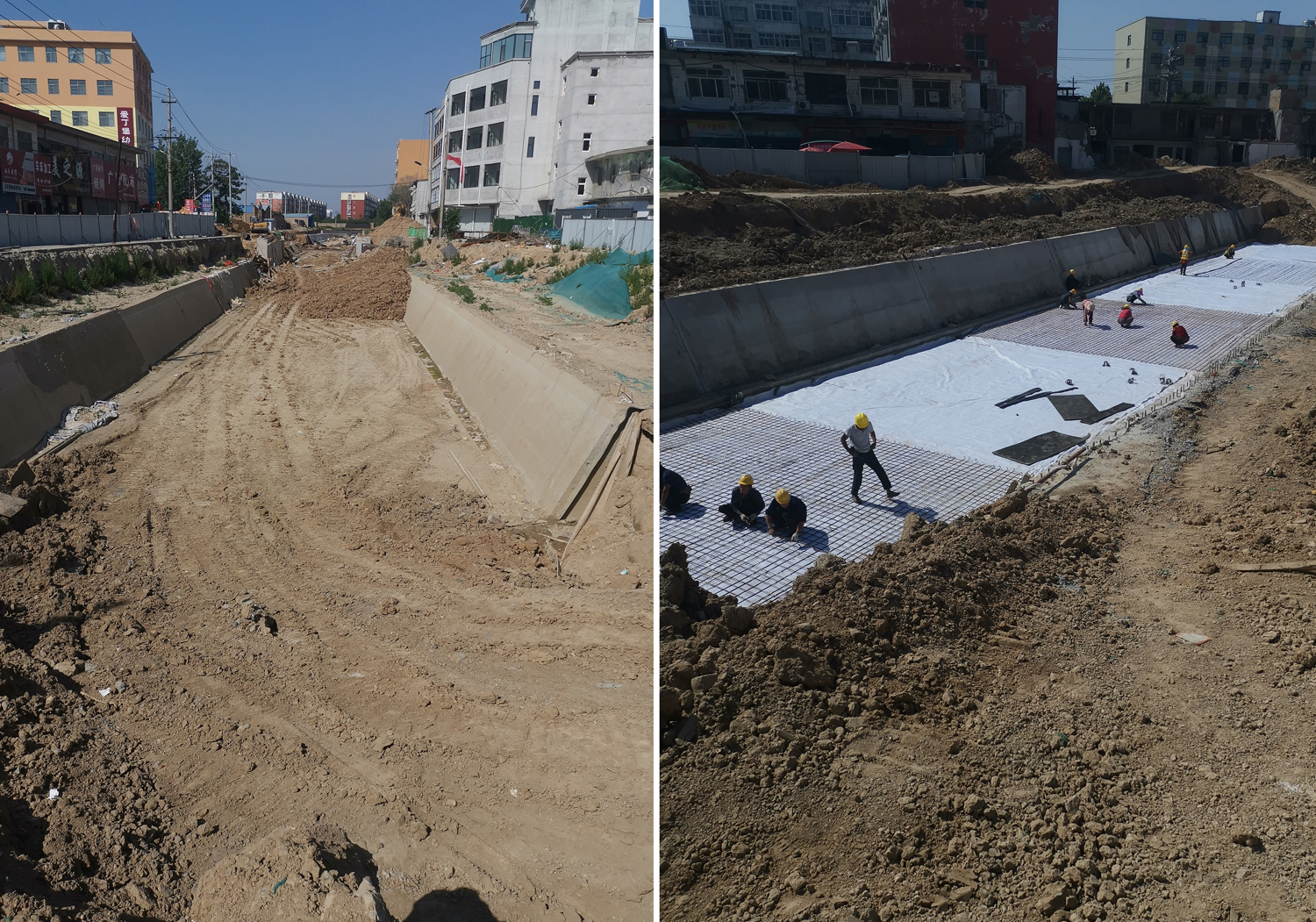 工程批復(fù)總投資4.8億元,批復(fù)工程主要建設(shè)內(nèi)容:渠道疏浚5 km;新建和改造兩岸堤防10 km;新建平板橋14座,人行拱橋3座;新建和改造截污管線4.02km;新建景觀鋼壩閘3座;渠道兩側(cè)綠化8萬m²;新建水循環(huán)泵站1座,埋設(shè)壓力管道4.8km。主要功能是泄洪、截污及景觀。2019年12月項(xiàng)目開工建設(shè),工期兩年。