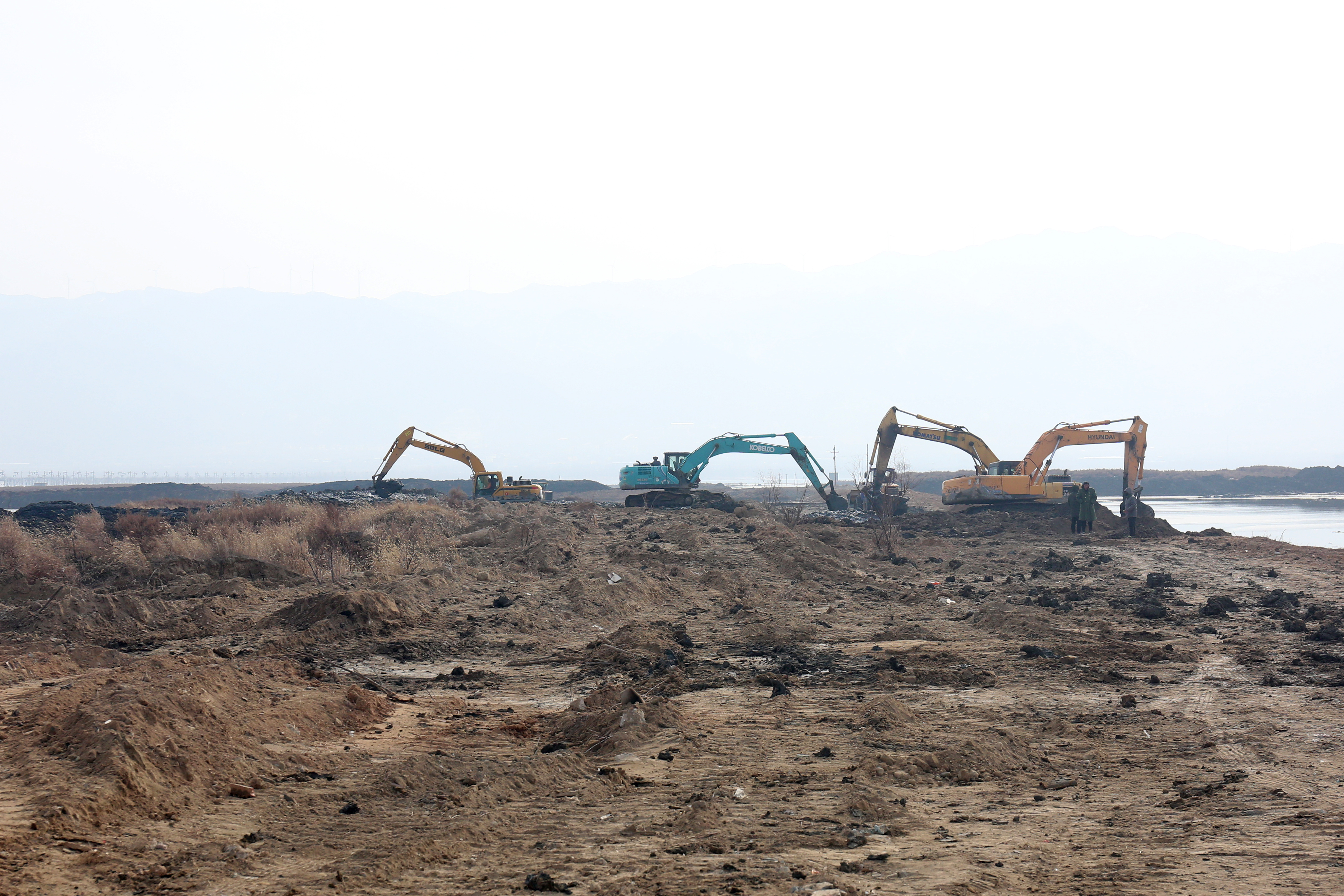 每到一處,詳細(xì)詢問施工人員康復(fù)情況、查看工地建設(shè)情況。干河清水復(fù)流段到處都是忙碌的工人,有安裝鋼壩閘的,有貼花崗巖的,有安裝欄桿的等;鹽湖生態(tài)治理工地上機(jī)械轟鳴,挖掘機(jī)、鏟車、挖泥船等20余臺大型機(jī)械有序運(yùn)作,施工人員搶抓工期,處處涌動著建設(shè)熱潮。