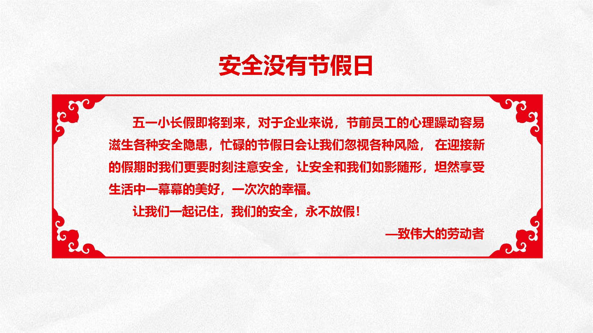 2023年五一節(jié)前安全重點暨假期安全提示
