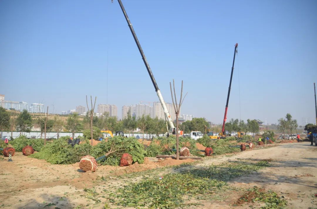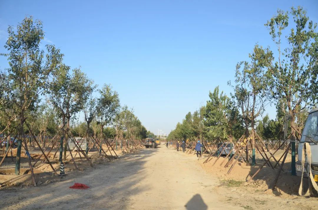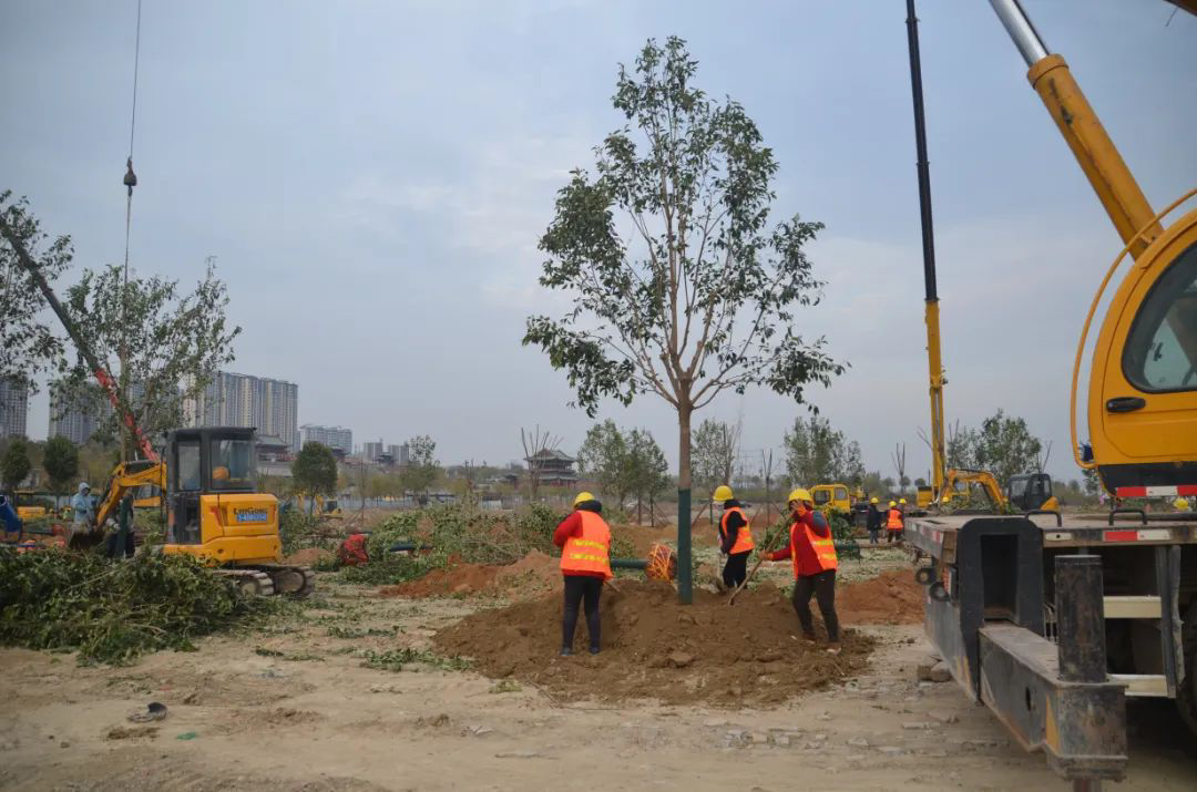 施工現(xiàn)場(chǎng),大型機(jī)械集中作業(yè),挖掘機(jī)、裝載機(jī)、吊裝機(jī)和運(yùn)輸車來(lái)回穿梭,九十余名工人辛勤勞作,相互配合,干勁十足,按設(shè)計(jì)規(guī)定放線挖坑、吊裝樹木、培土壓實(shí),防護(hù)林建設(shè)有序進(jìn)行。栽植過程中,多次討論研究,結(jié)合鹽池生態(tài)環(huán)境,統(tǒng)籌考慮,因地制宜選擇當(dāng)?shù)卦灾矘浞N,目前已種植國(guó)槐、榆樹、大葉女貞、紅葉石楠、大葉黃楊、金森女貞、麥冬等各類喬灌木草種共計(jì)700余株,綠化種植面積2萬(wàn)多平米,綠化建設(shè)將進(jìn)一步對(duì)鹽湖北側(cè)岸帶生態(tài)系統(tǒng)起到很好的防護(hù)作用。