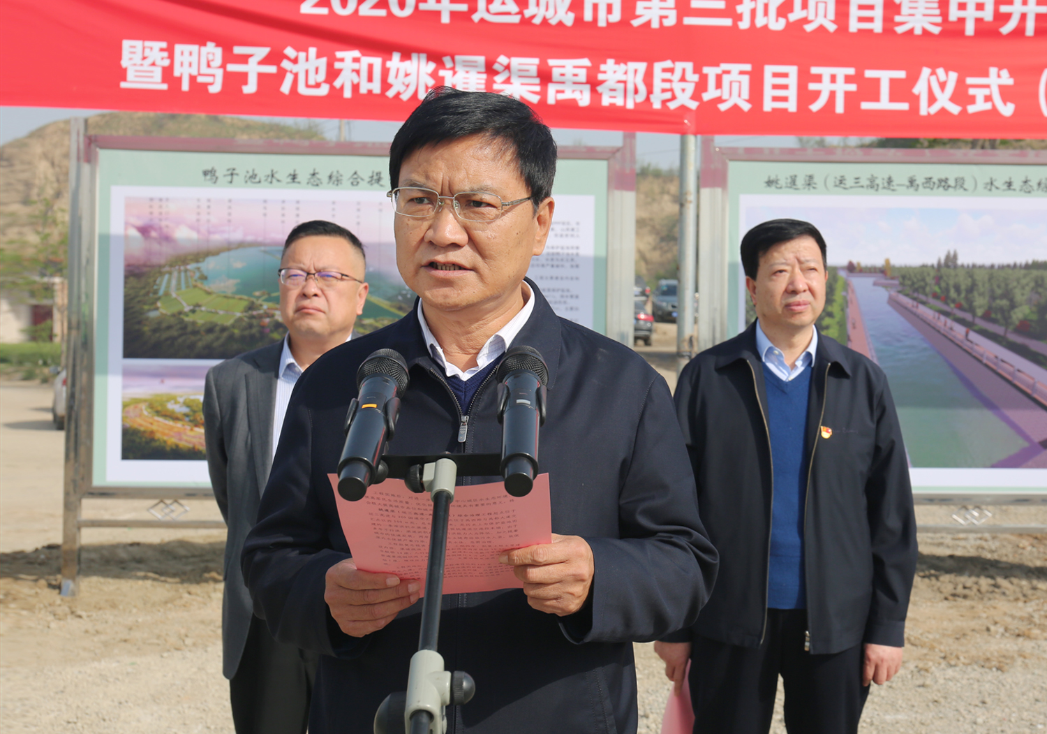 4月15日,在全市第三批重點(diǎn)項(xiàng)目集中開工分會場,鴨子池北口,我公司實(shí)施的“1311”重點(diǎn)工程項(xiàng)目姚暹渠(運(yùn)三高速-禹西路)水環(huán)境綜合治理PPP項(xiàng)目和鴨子池水生態(tài)綜合提升工程PPP項(xiàng)目舉行開工儀式,市水務(wù)局局長靳虎剛,市水投公司董事長崔作銘、副總經(jīng)理呂希汶,運(yùn)城經(jīng)開區(qū)管委會副主任張大虎、鹽湖區(qū)水務(wù)局局長王杰妮,安邑辦事處主任孔繁榮、東郭鎮(zhèn)鎮(zhèn)長薛世鵬,兩個(gè)工程的項(xiàng)目管理公司高強(qiáng)、胡峰偉董事長,山西建工西北分公司李興波經(jīng)理等部門領(lǐng)導(dǎo)參加了開工儀式。開工儀式由市水投公司副總經(jīng)理范永勝主持。