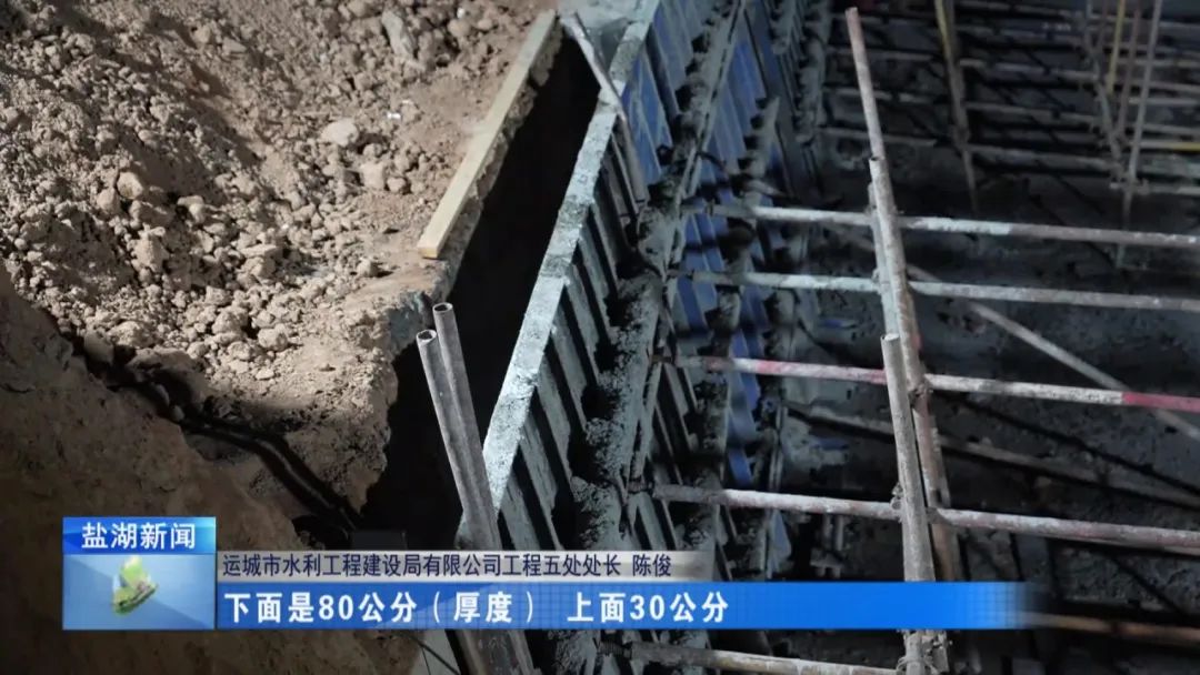 目前進(jìn)行的是仰斜式擋墻的澆筑,澆筑一共分五步,因?yàn)樗怪备叨?.5米,不能一次澆筑完,澆筑一次,休息一會,達(dá)到初凝,再澆第二次,咱們目前在的地方已經(jīng)澆筑四次了,再差一層就澆筑完了,這個(gè)完成了以后,咱們農(nóng)村段24公里就全線貫通。