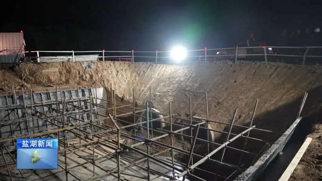 現(xiàn)在是4月28日晚上11時(shí)30分,在我身后,姚暹渠鹽湖段最后一部分水泥板正在進(jìn)行澆筑。澆筑完成后,全長24.9公里的姚暹渠鹽湖段主體渠道將實(shí)現(xiàn)合龍,形成完整的過水通道,標(biāo)志著工程迎來關(guān)鍵的階段性勝利。